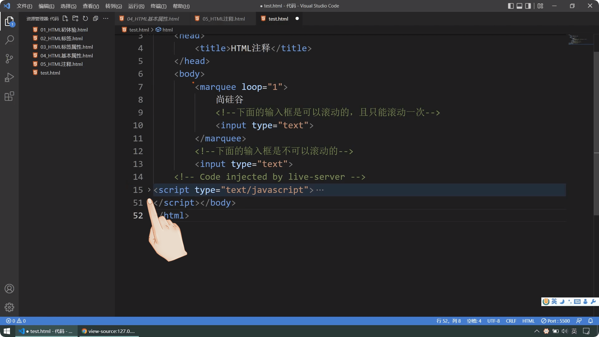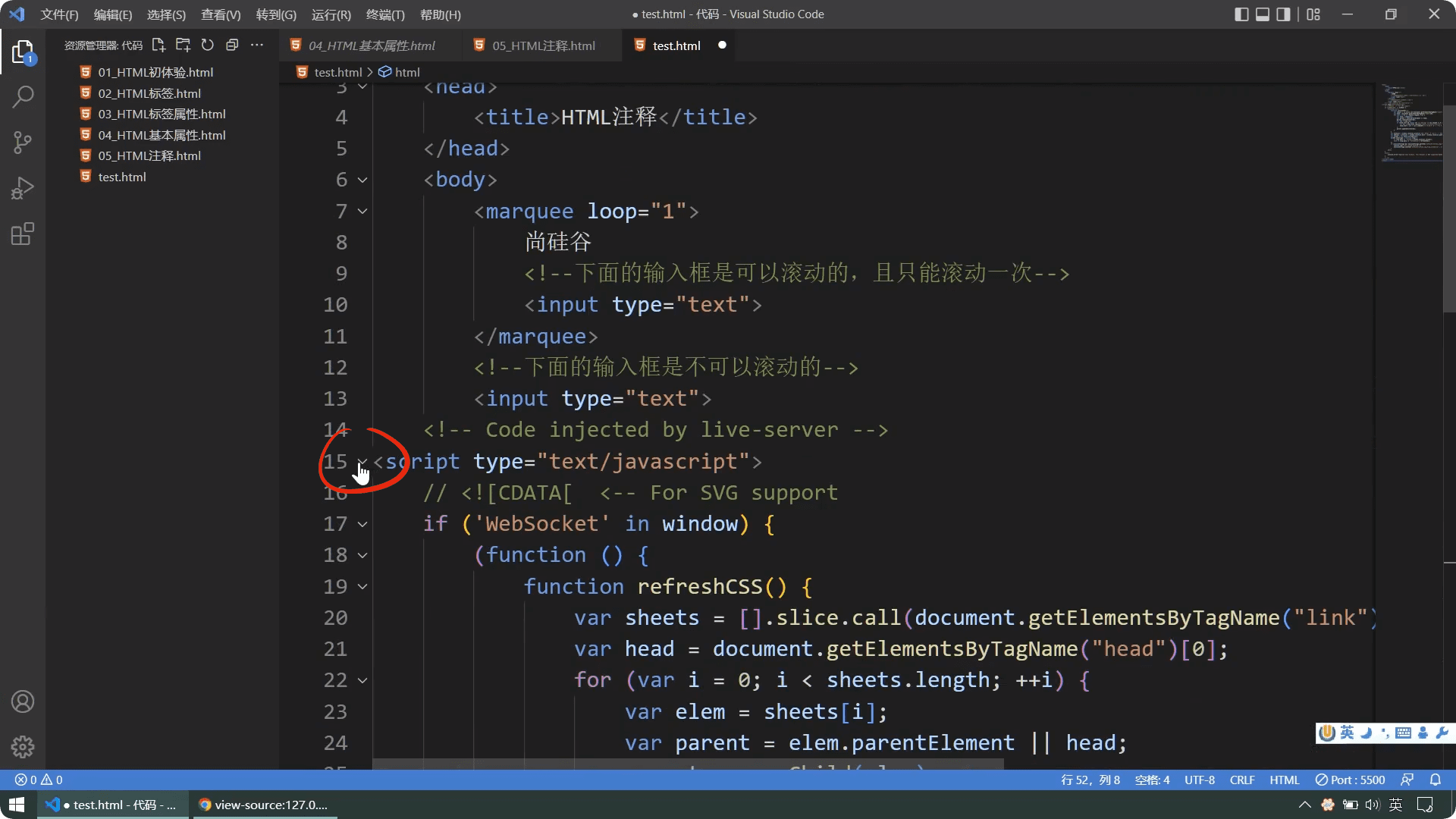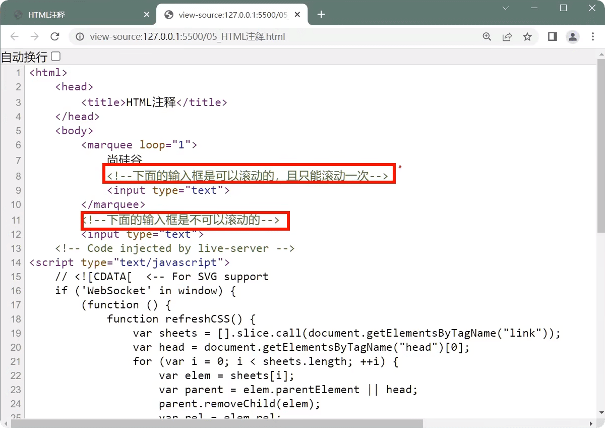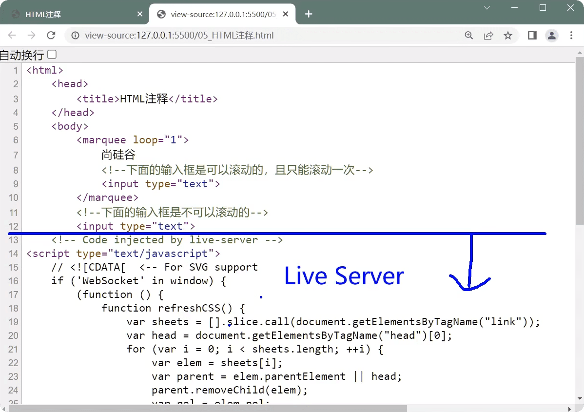 下方的多一条注释,是Live Server生成的js热更新代码,不用管