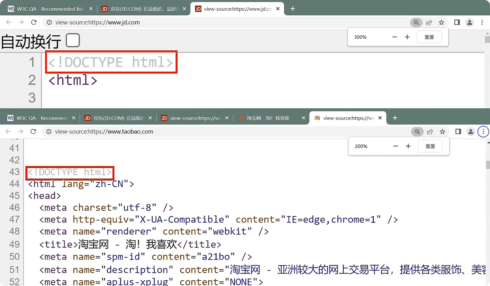 虽然浏览器默认使用最新的HTML5,但是每个人使用的浏览器不同,所以在代码中我们最好直接声明