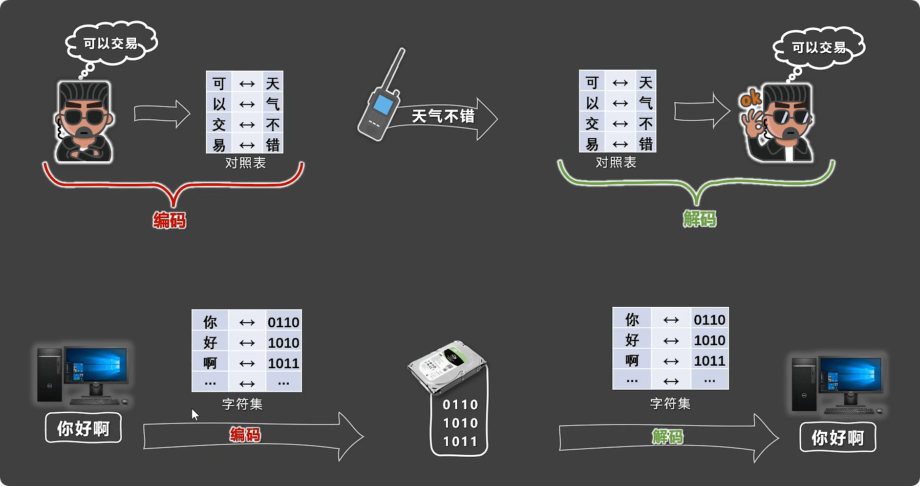 而这种暗号就相当于一种 编码,读取暗号就相当于 解码