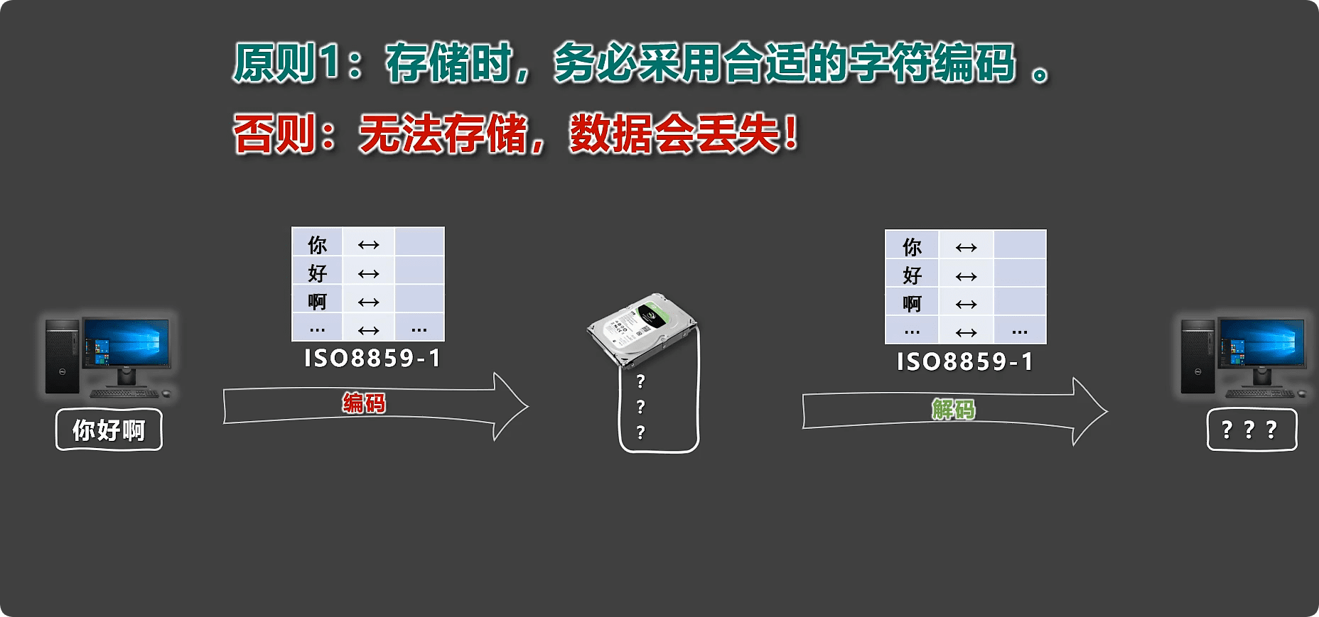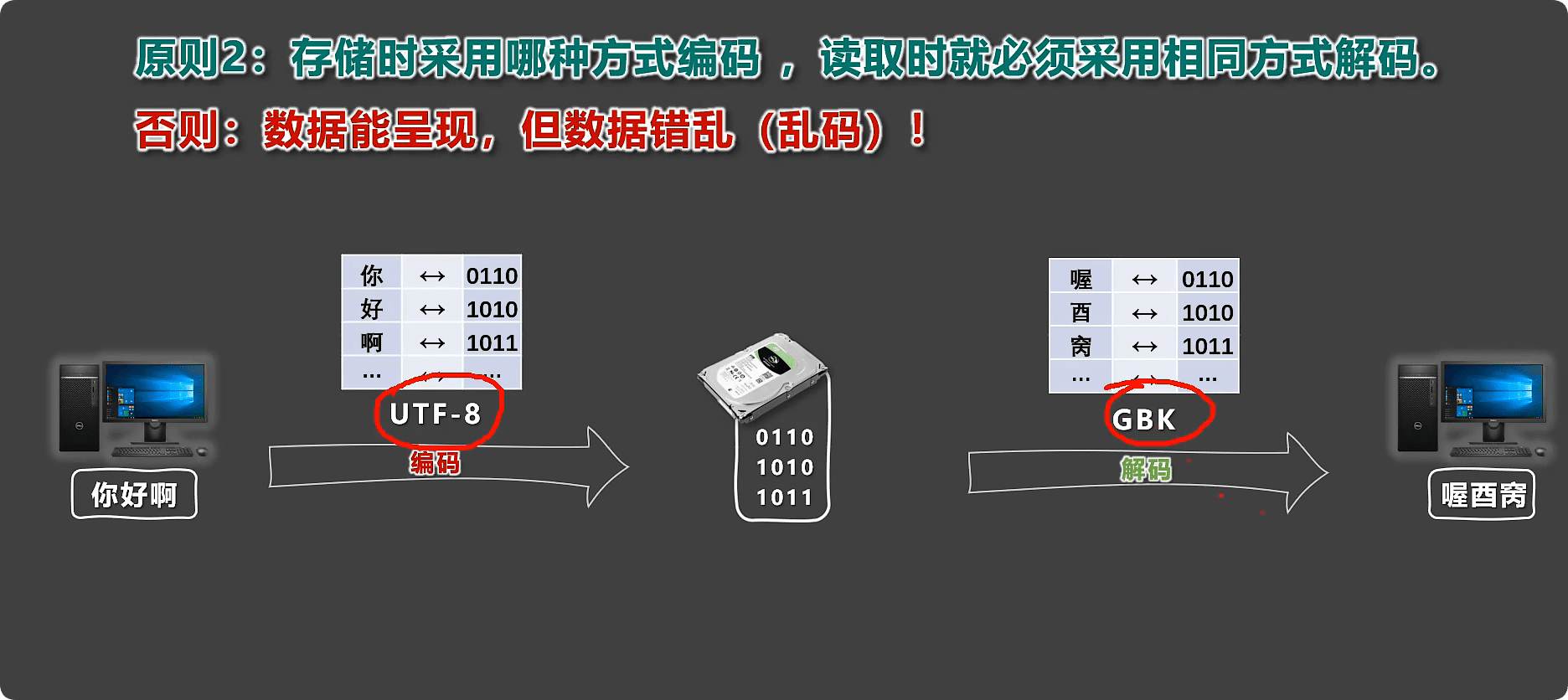 存储和读取采用同种方式解码,否则数据错乱(乱码)!