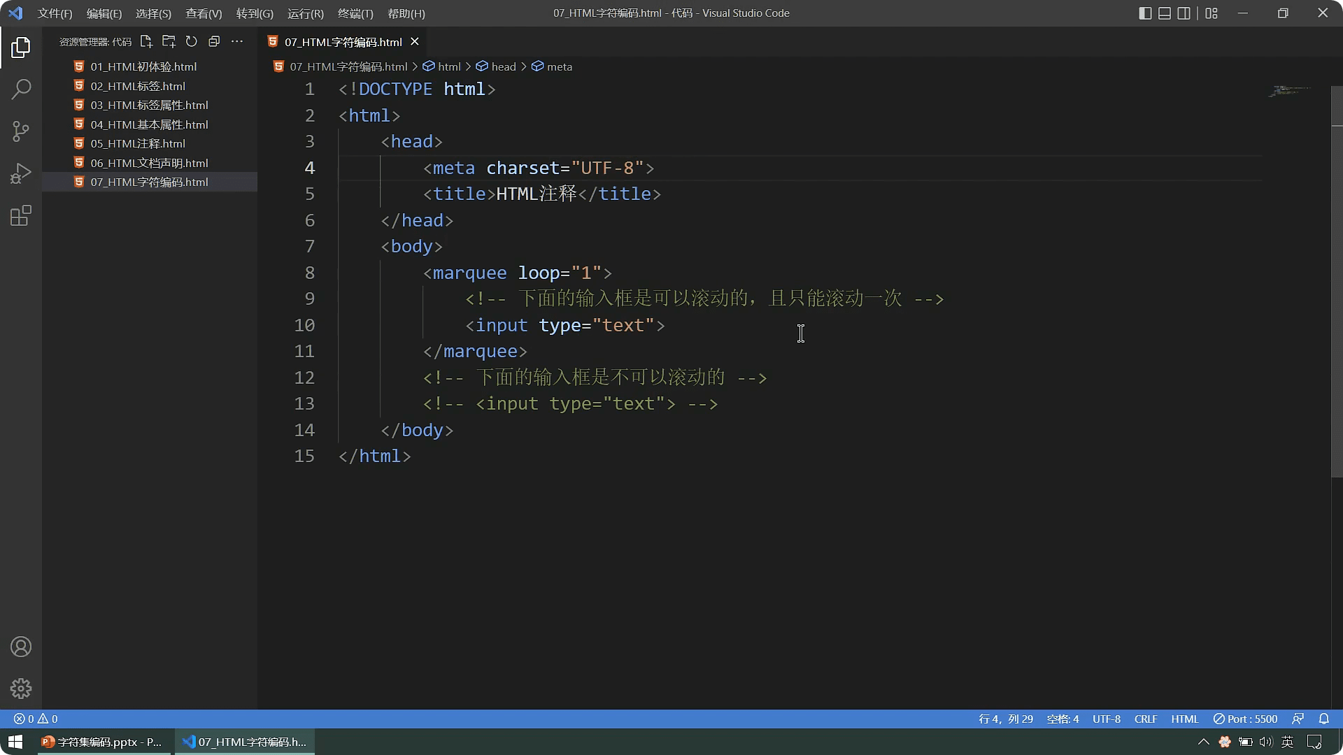 那我在代码中如何指定呢,使用 <meta> 标签,添加字符集即可