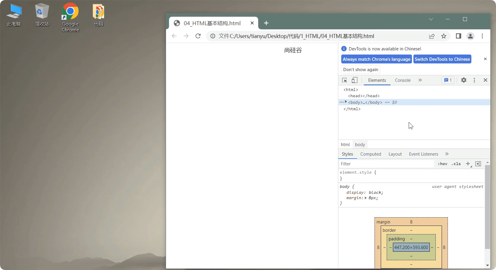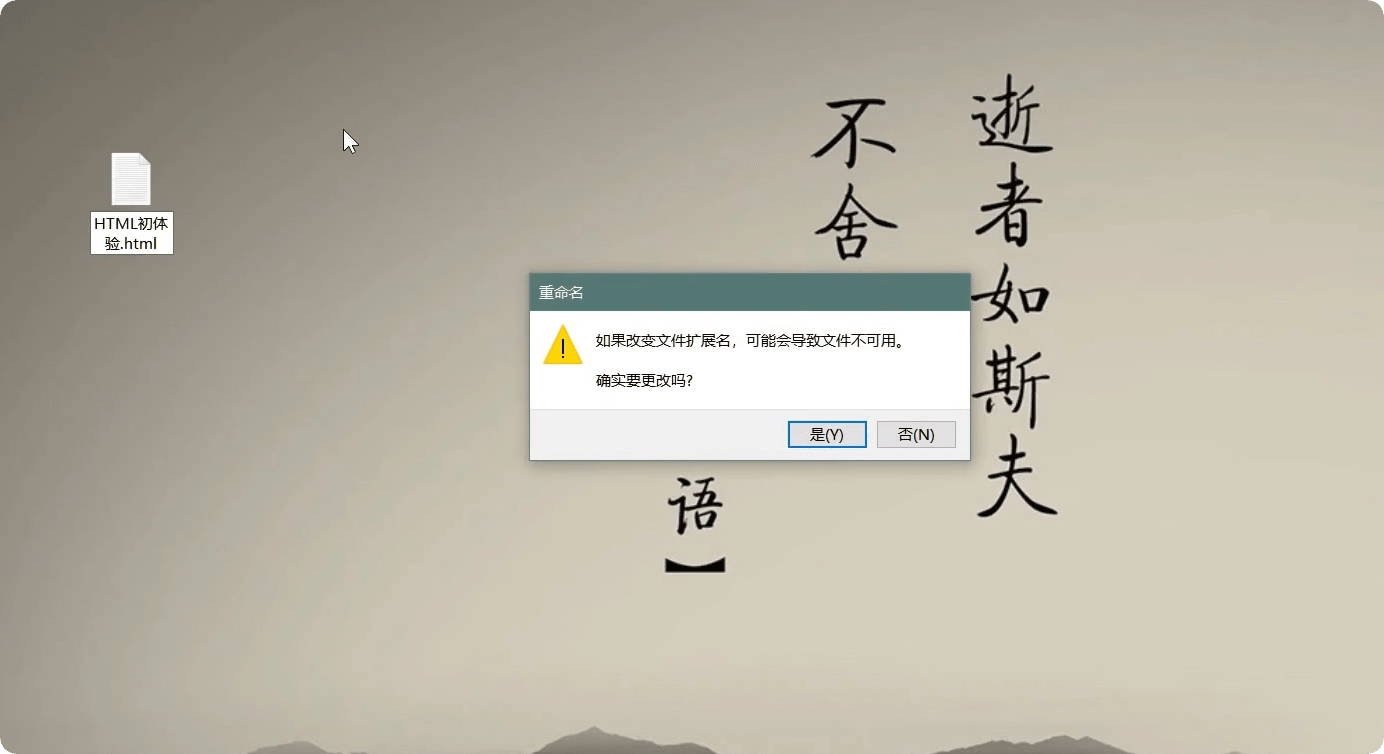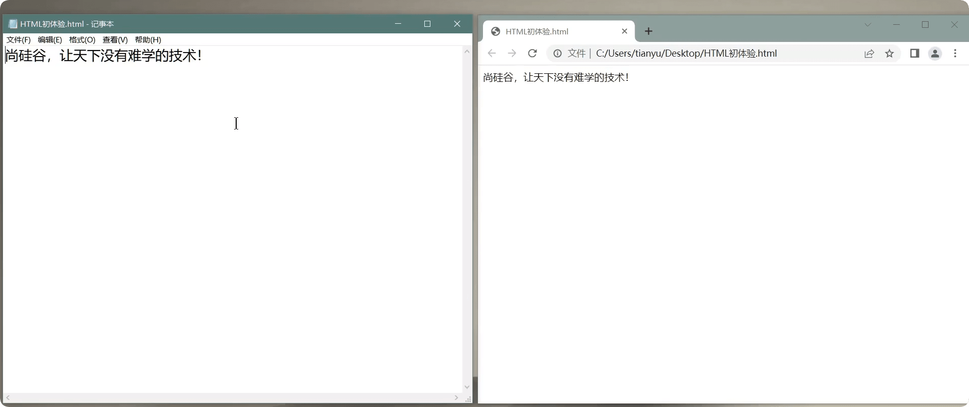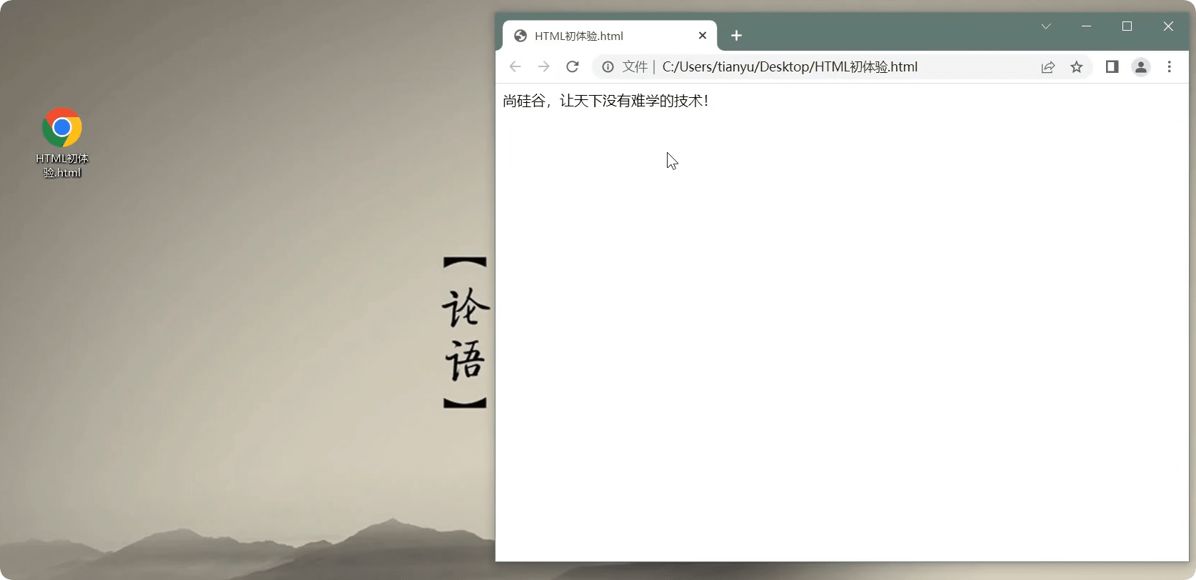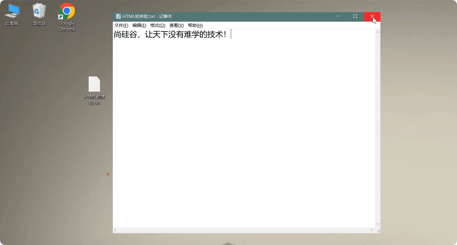 命令为 HTML初体验 ,输入文字,Ctrl+S键 保存