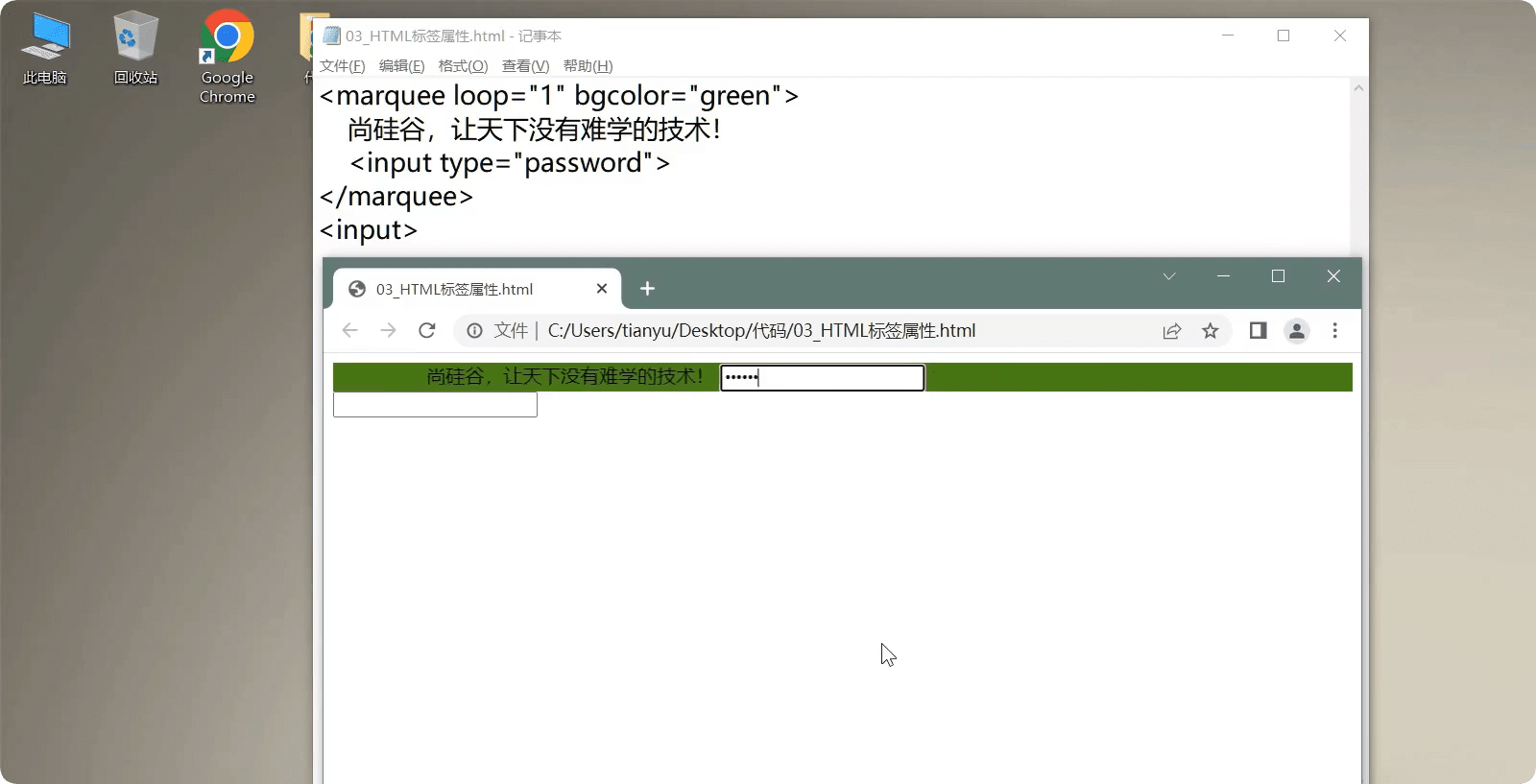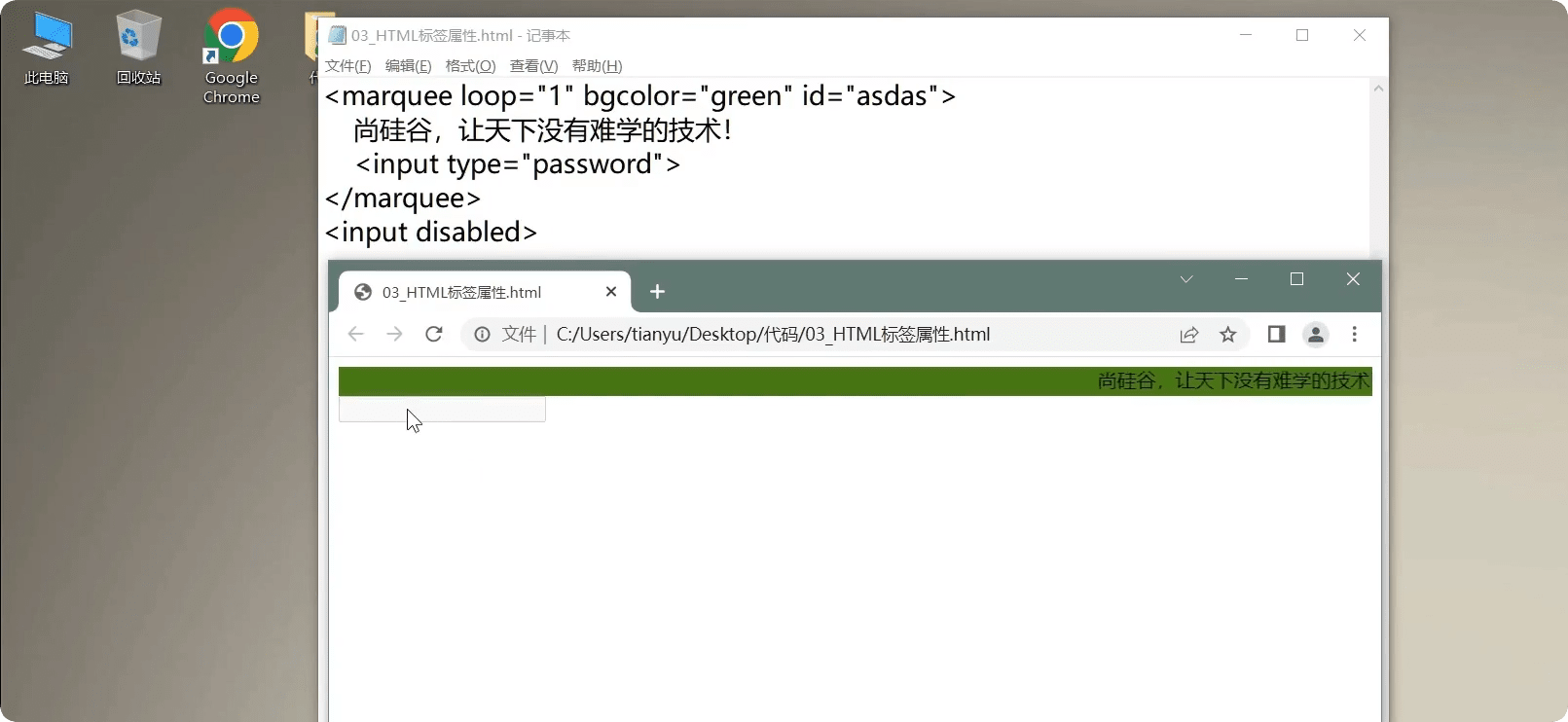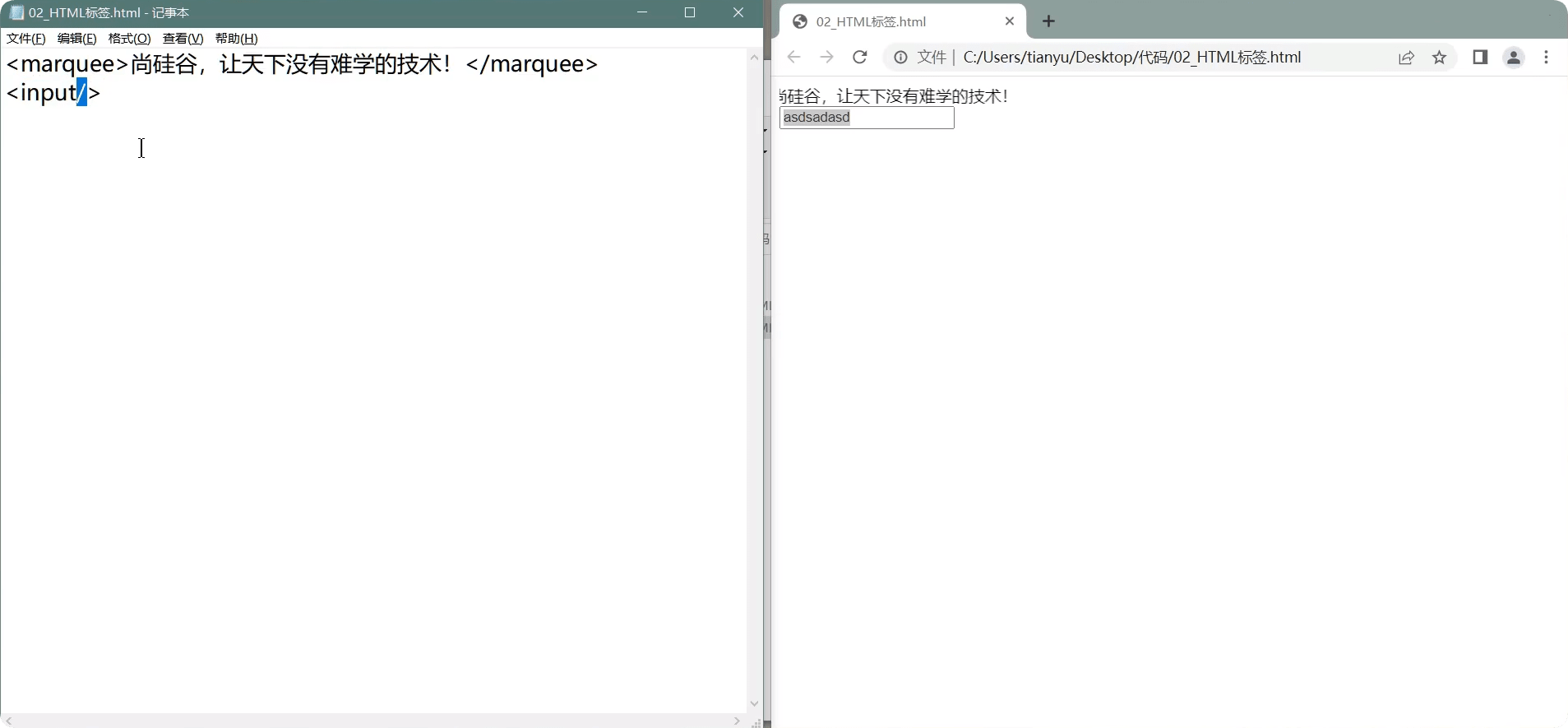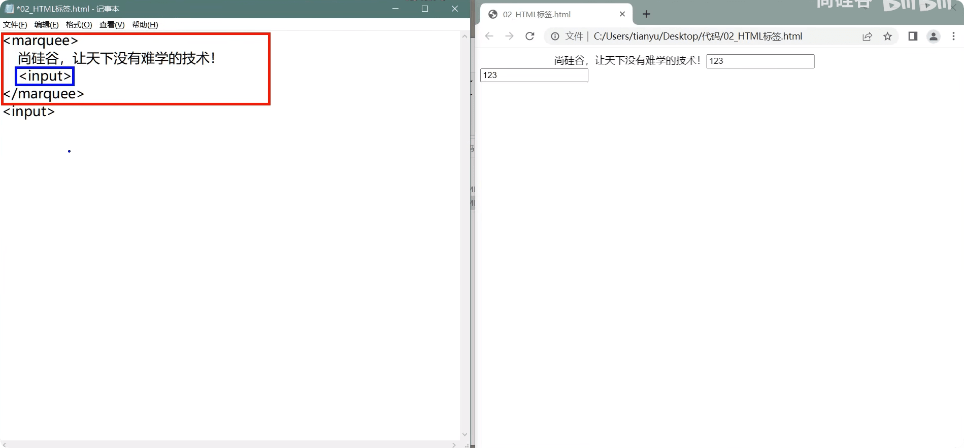 <marquee>尚硅谷,让天下没有难学的技术!<input/></marquee>