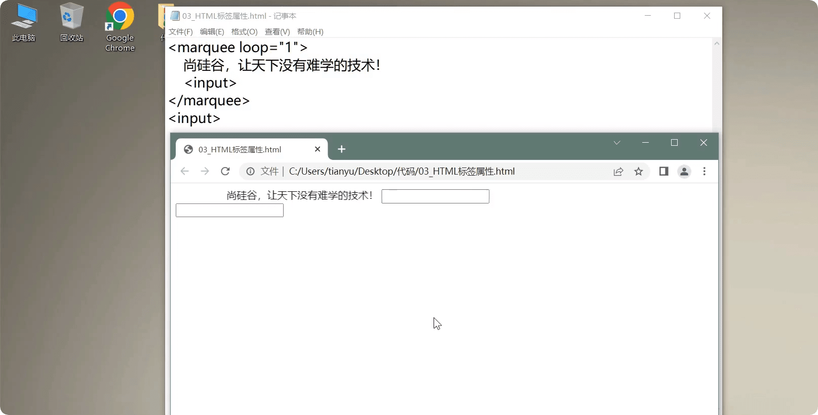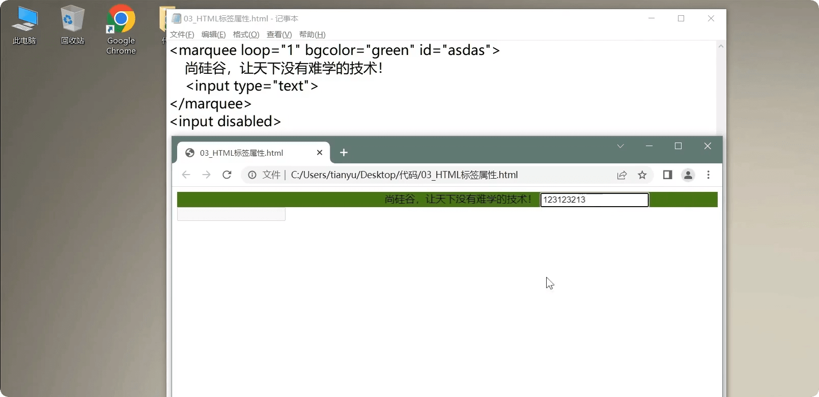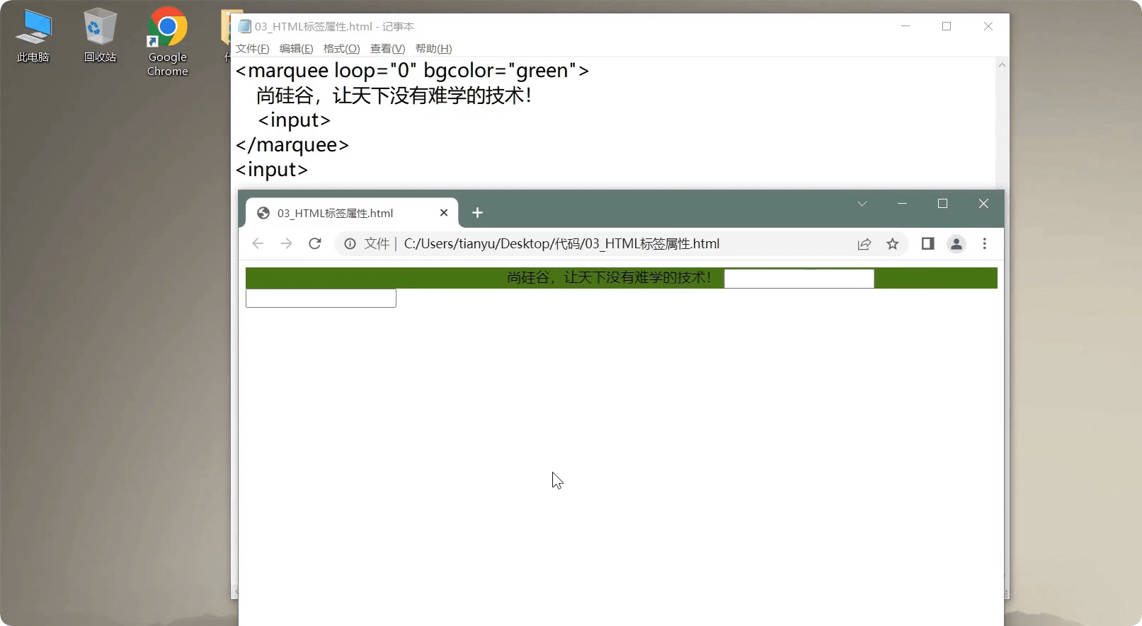 <marquee>尚硅谷,让天下没有难学的技术!<input/></marquee>