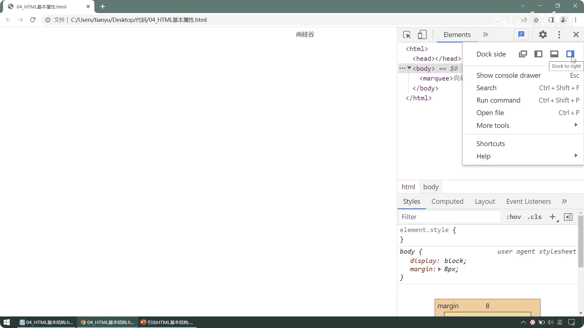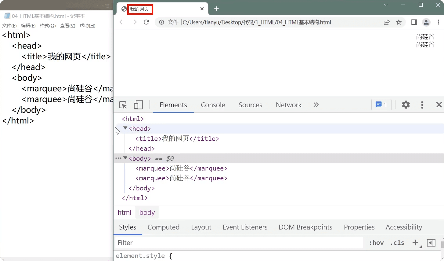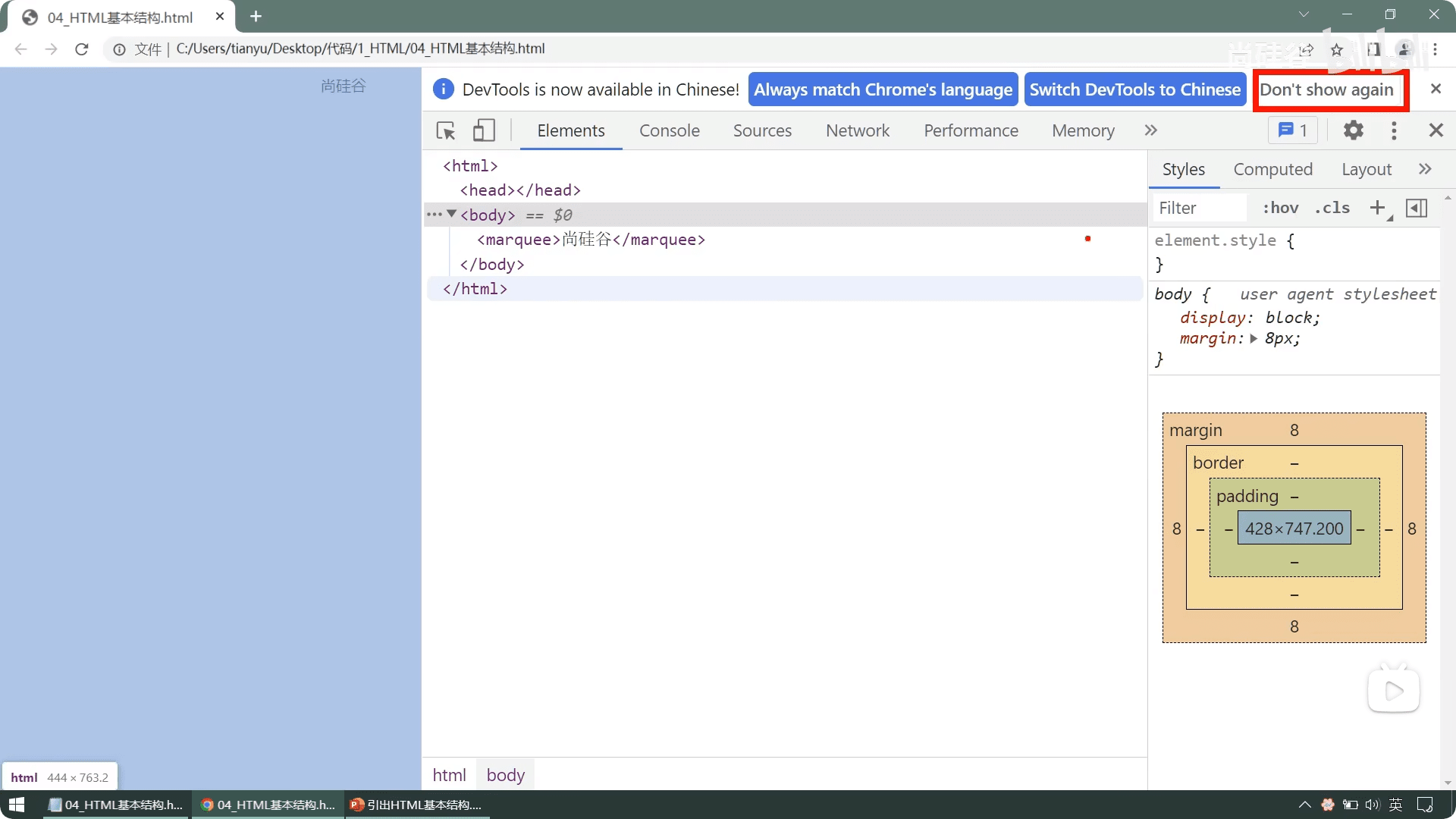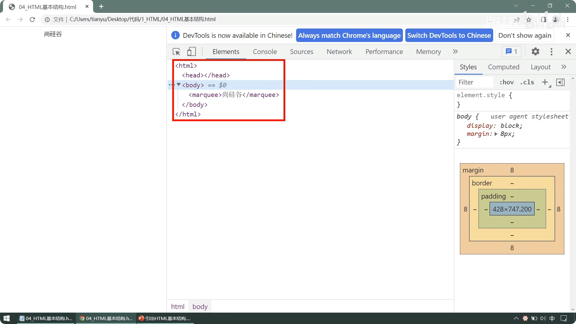 我们只写了 <marquee> 这一段,而浏览器给我们补全了