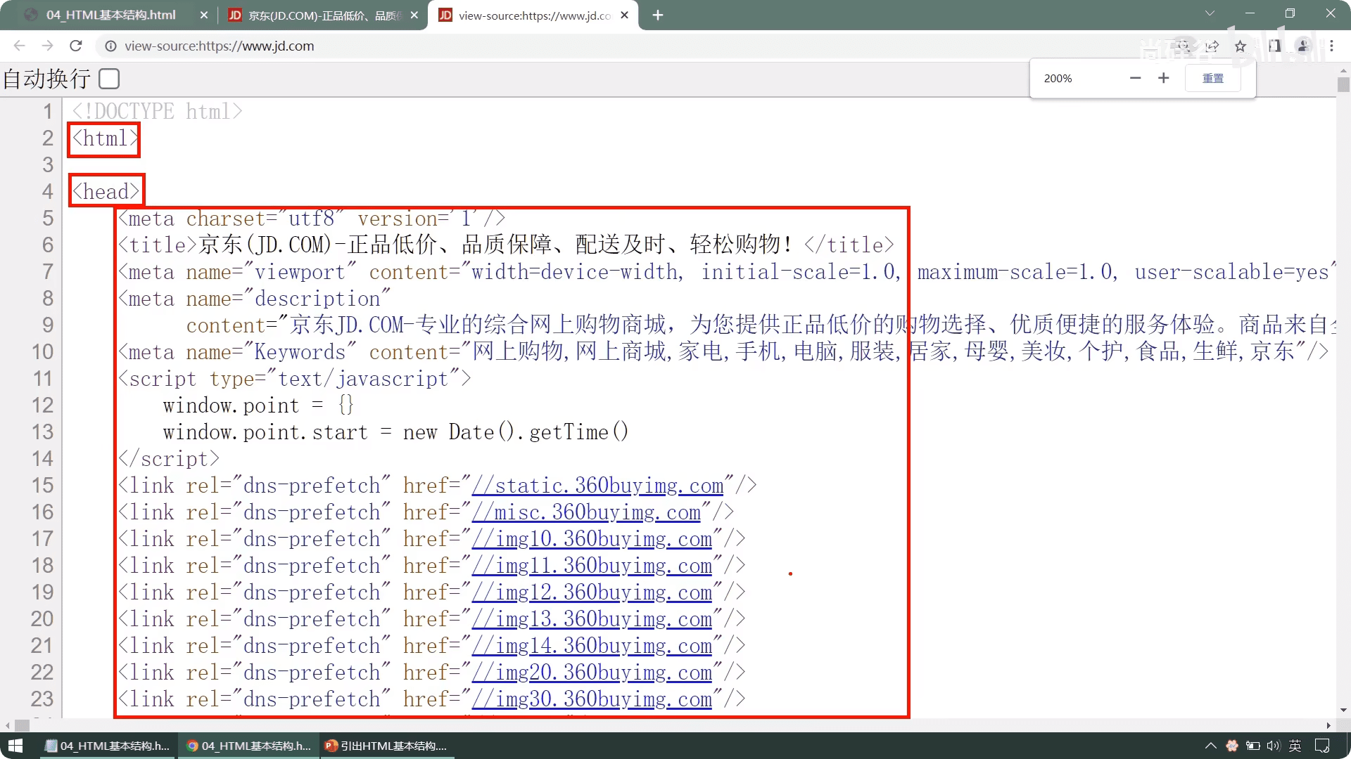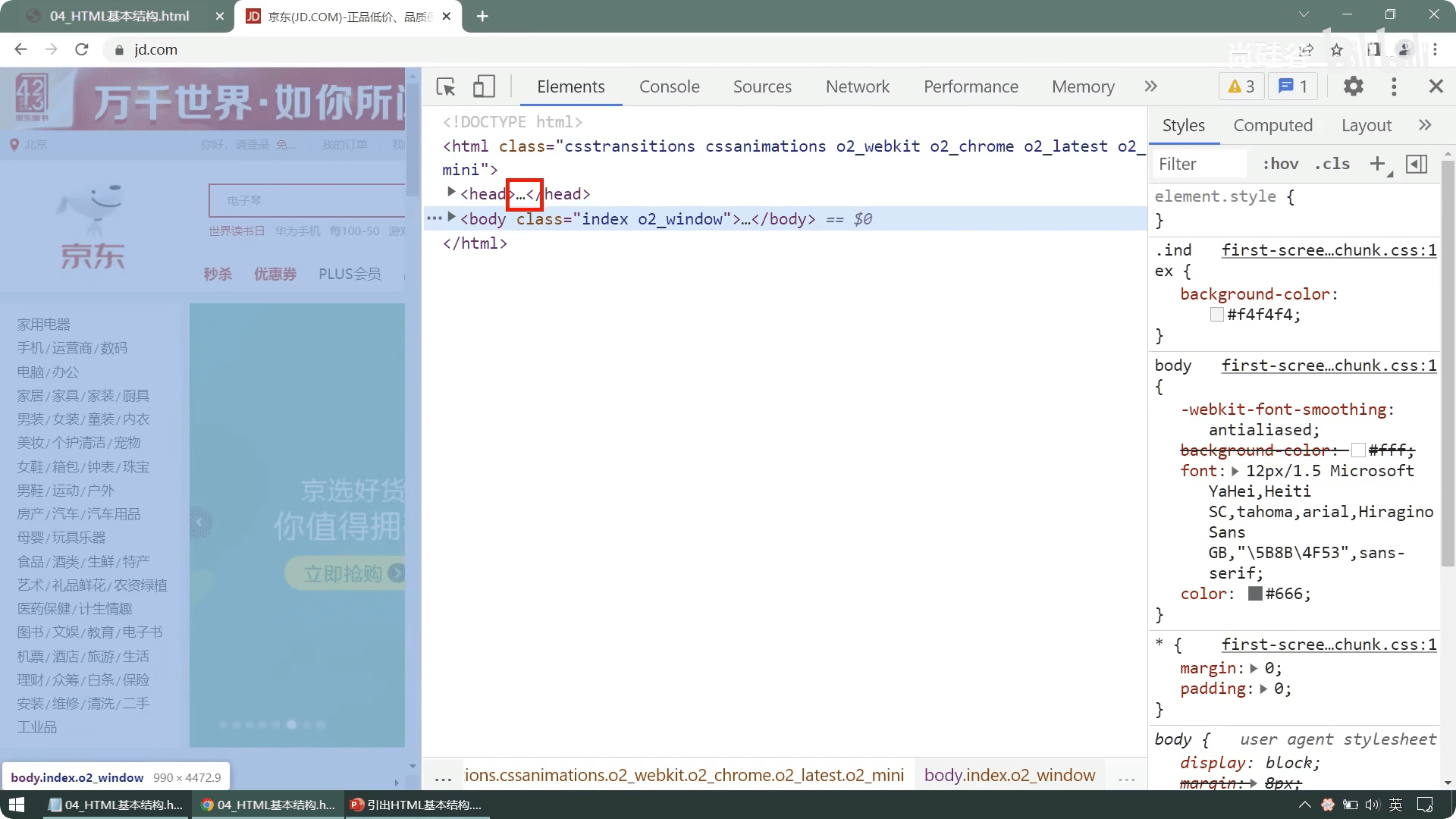 我们拿 京东 做例子,一样的结构,但是head有内容