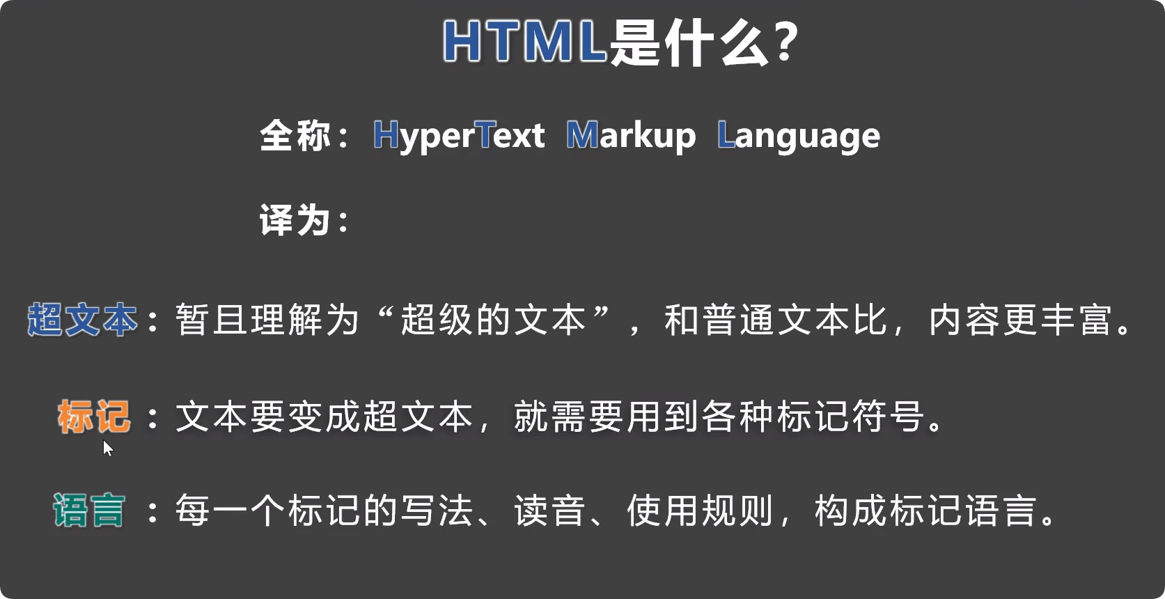 超文本:暂且简单理解为 “超级的文本”,和普通文本比,内容更丰富