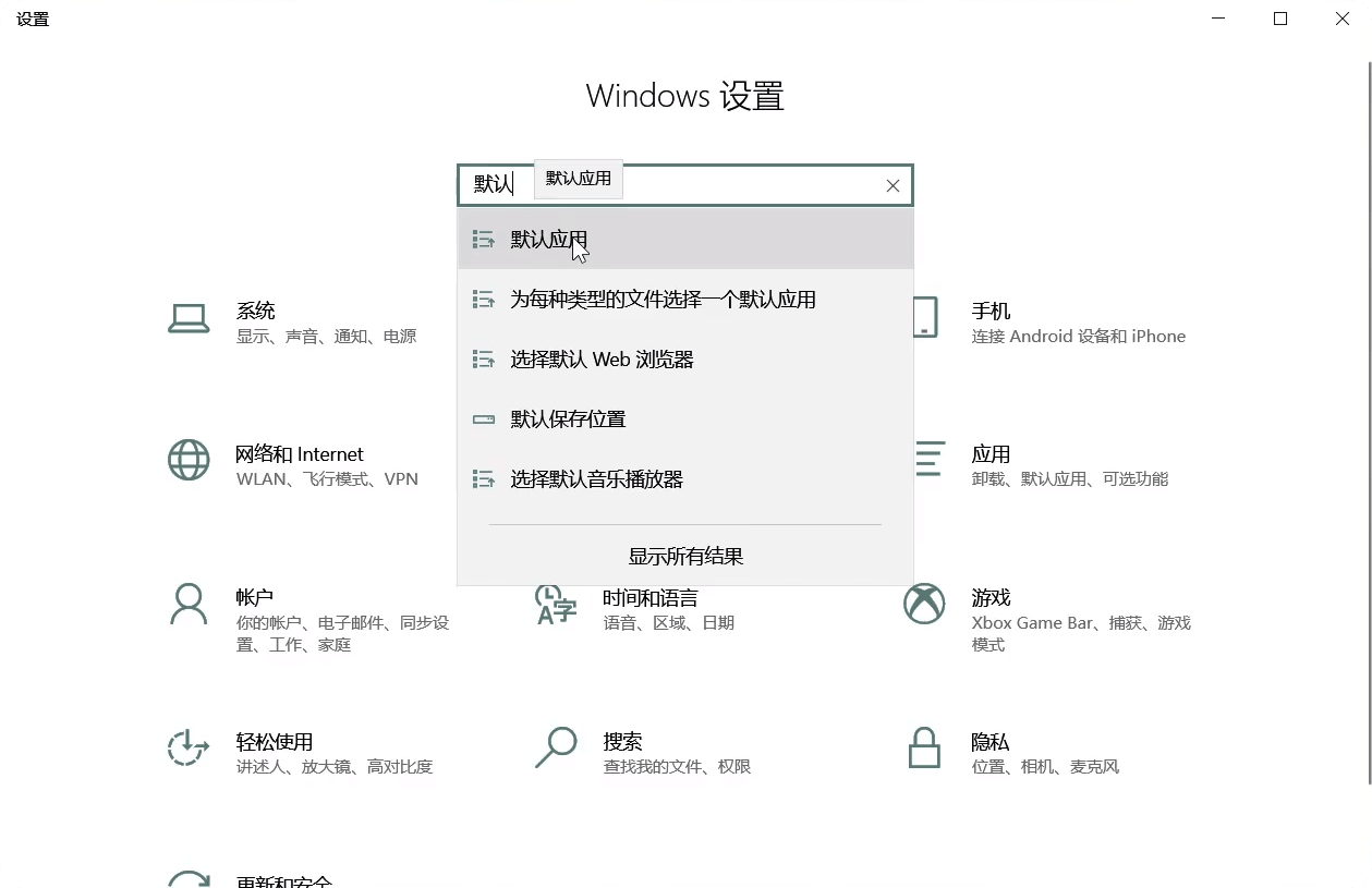 下载安装好后,点击 win键 - 设置,搜默认应用